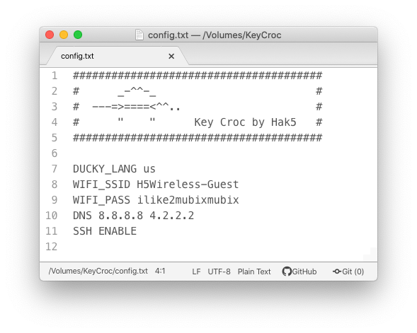 Activating payloads and configuring settings like WiFi and SSH is as easy as editing a text file.